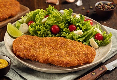La pechuga de pollo a la milanesa funciona como plato fuerte acompañado con una ensalada o rodajas de limón que corten un poco la grasa de su fritura ya que las tradicionales milanesas son fritas, aunque para tener una preparación más balanceada también se pueden preparar al horno.