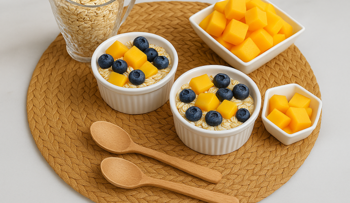 - 2.Pasado el tiempo, agregar el mango picado y arándanos.